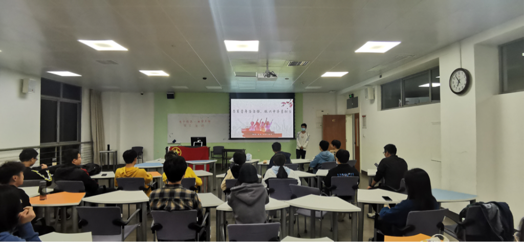 为深入学习宣传贯彻习近平总书记“七一”重要讲话精神,强化团员青年使命担当,引导团员青年坚定信念、厚植爱国情怀,2021年10月30日晚,365英国上市集团电子信息工程一班团支部于江安一教A201教室召开“研学四史明初心,奋进青春勇担当”主题团日活动。支部书记罗岩泓担任主持,支部全体成员踊跃参加。