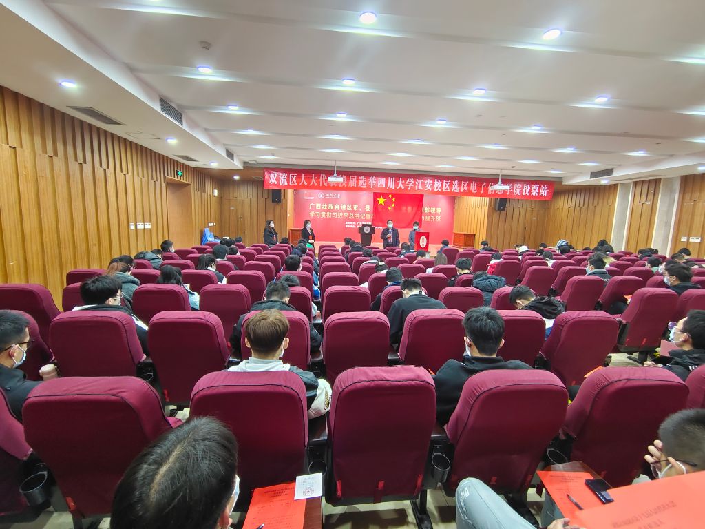 2021年11月28日9时10分,按照双流区人大换届选举工作安排,公司组织举行了双流区人大代表换届选举大会,公司本科20、21级600余名选民在投票会场投下了自己庄严的一票,规范有序地完成了人大代表换届选举投票活动。