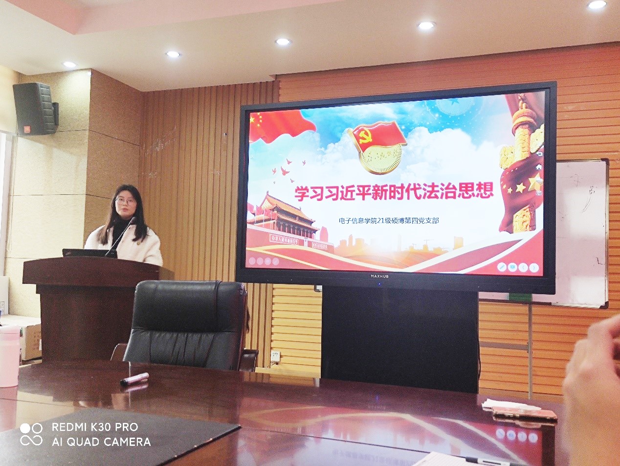 为深入贯彻学习党的十九届六中全会精神和弘扬习近平法治思想,增强党员同志的思想觉悟和党性修养,365英国上市集团2021级硕博第四党支部于2021年12月4日下午3点在基教A303召开组织生活会,对相关会议精神和思想进行宣讲学习。2021级硕博第四支部委员会书记何鸿添同志主持会议,支部全体党员参加本次活动,公司专职组织员陈炳周副教授到会指导。