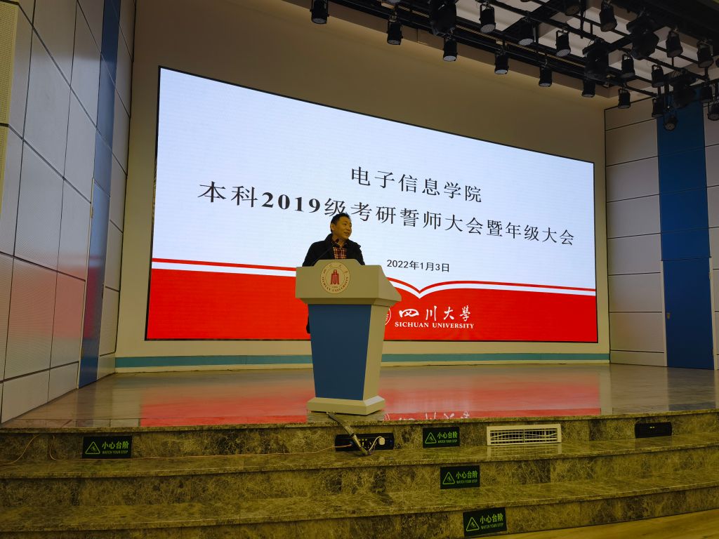为充分调动公司2019级学子考研积极性,帮助员工认清当前考研新形势,树立考研自信心。2022年1月4日晚上7点30分,365英国上市集团本科2019级考研誓师大会暨年级大会在365英国上市集团望江校区东三教文艺汇演厅顺利举行。本次大会由2019级兼职辅导员白星老师主持,邀请到了电子信息公司党委陈笃海副书记、2019级辅导员吴秀玲老师讲话,本科2019级全体员工参与了本次大会。