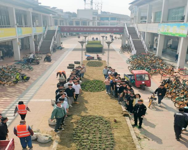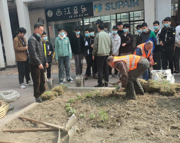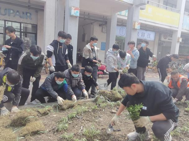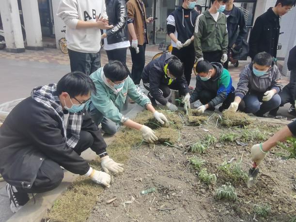 2022年3月4日下午14时,2020级30余名本科生在商业街进行草坪的种植工作。本次活动由2020级辅导员陈晓娟老师组织,各班长协助,得到了同学们的积极响应。