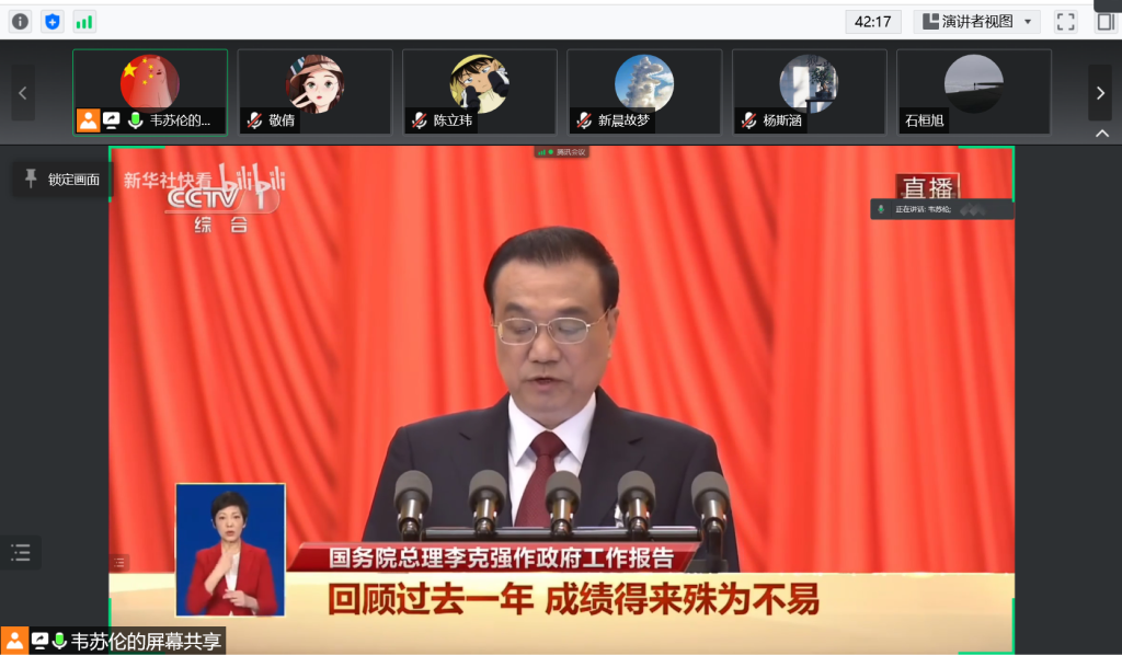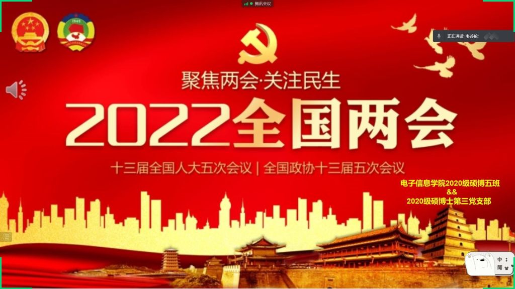 2022年3月4日和3月5日,全国政协十三届五次会议和十三届全国人大五次会议在北京开幕,为积极响应公司号召,3月5日晚上8点,2020级硕博士五班组织同学们线上观看人大五次会议开幕会。