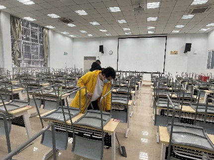 为让同学们拥有更加美好舒适的学习环境,督促同学们在新的一年积极备考,2019级辅导员吴秀玲老师和白星老师带领19级各班班长团支和考研辅导小组的同学于2月22日11点前往望江校区西五教附101对考研自习室和教室前后杂物进行整理、清扫。