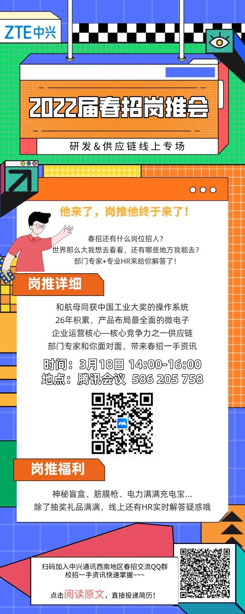 中兴通讯研发&供应链专场岗位推荐会,将于2022-03-16-16:00通过腾讯会议举行