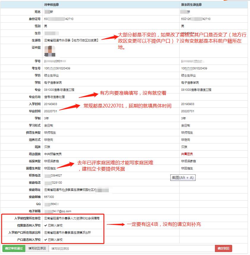 生源信息填写注意事项如图: