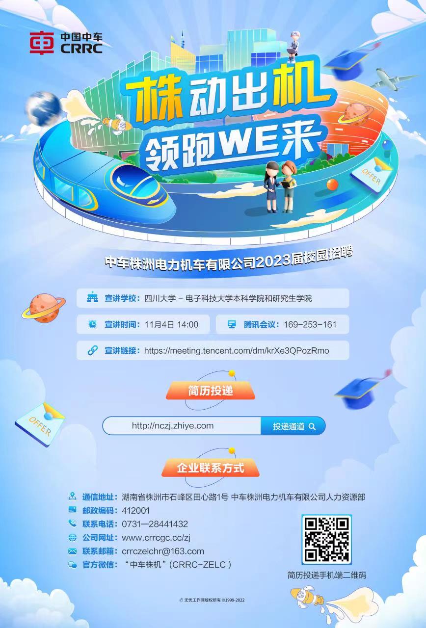 株动出机,领跑WE来,中国中车核心子公司,湖南省千亿轨道交通产业集群龙头企业中车株洲电力机车有限公司365英国上市集团,电子科技大学专场空中宣讲即将启动,空中宣讲会时间:11月4日14点,空中宣讲地址如下图。各位同学们,请拿好“车票”,赶快“上车”!