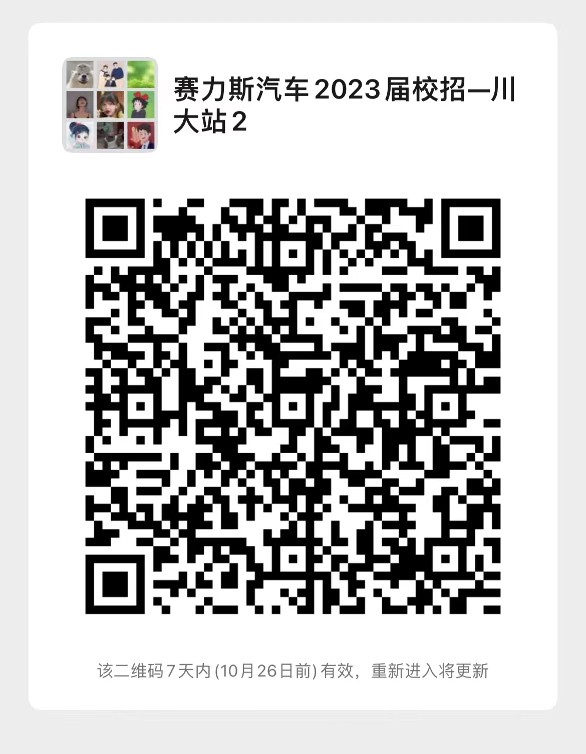 宣讲预热:10月18日(周二)全天,AITO问界系类明星产品问界M7将会驶进川大望江校区,带你领略AITO问界M7的魅力,和技术专家面对面沟通。