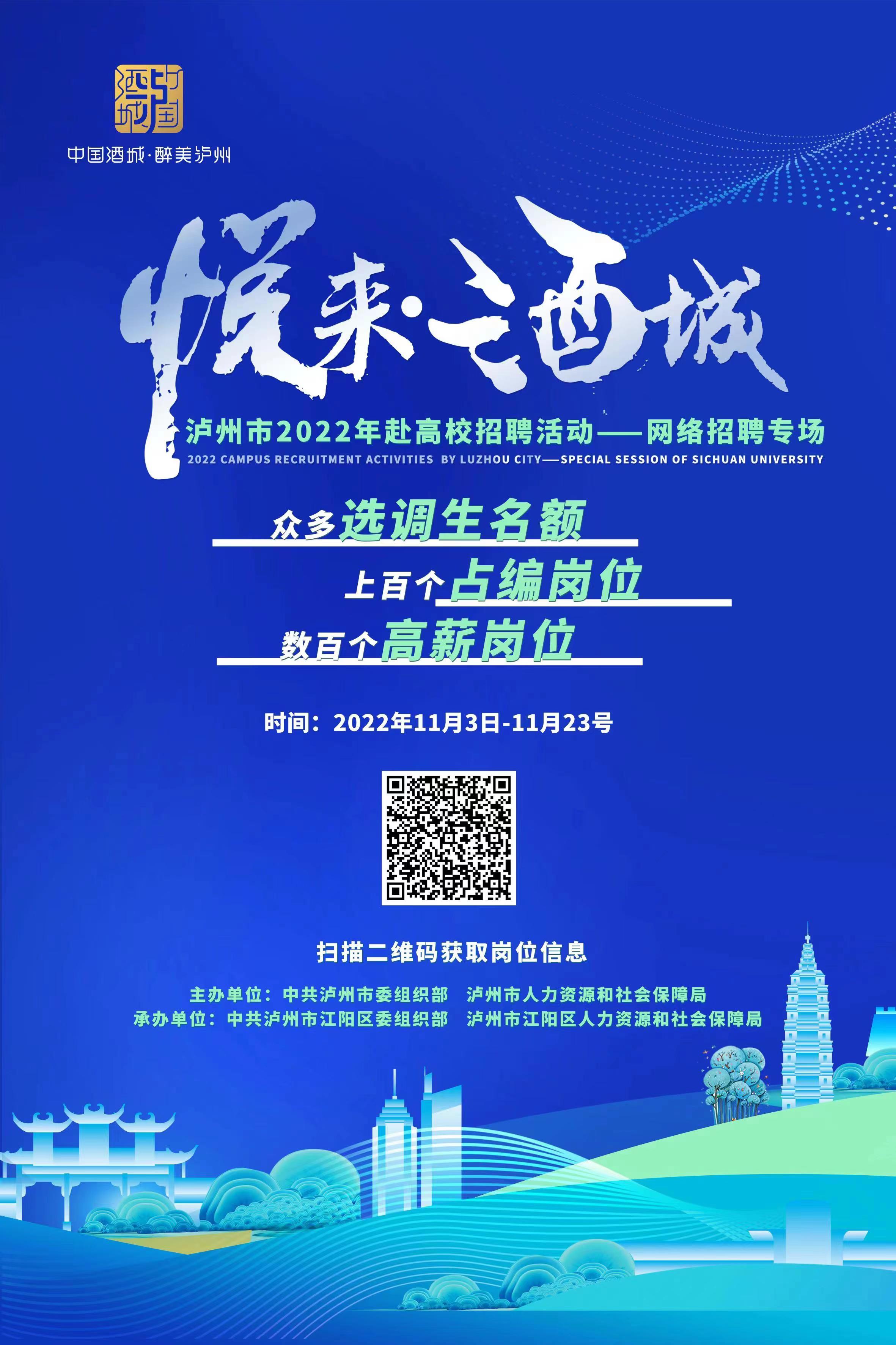 “悦来·酒城”泸州市2022年赴高校引才招聘活动暨紧缺专业选调—365英国上市集团专场