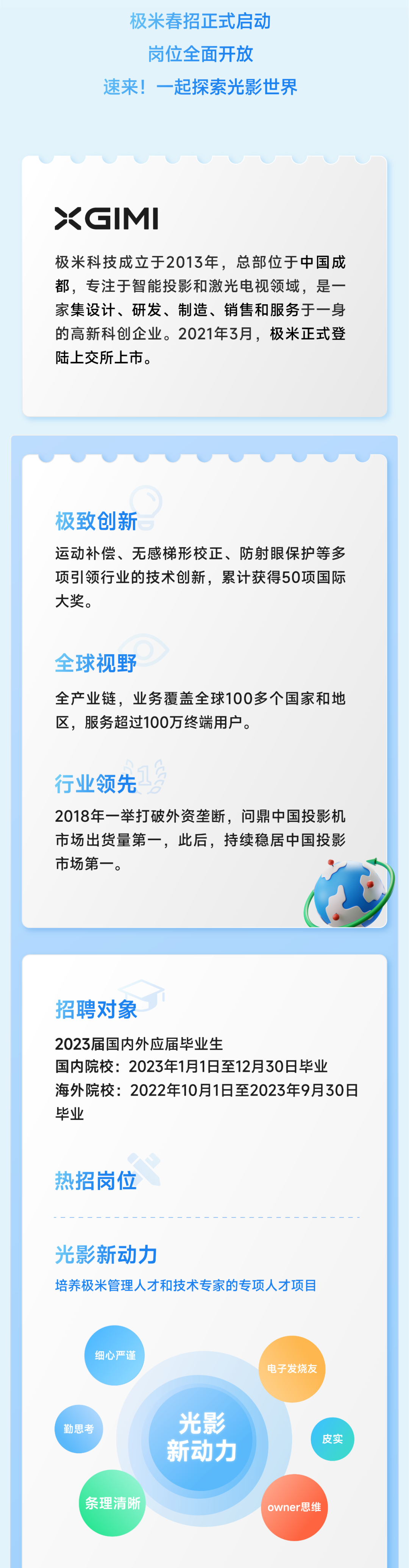 公司总部位于成都,专注于智能投影和激光电视领域,是一家集设计、研发、制造、销售和服务于一身的高新上市科创企业。目前业务范畴遍布全球100多个国家和地区。