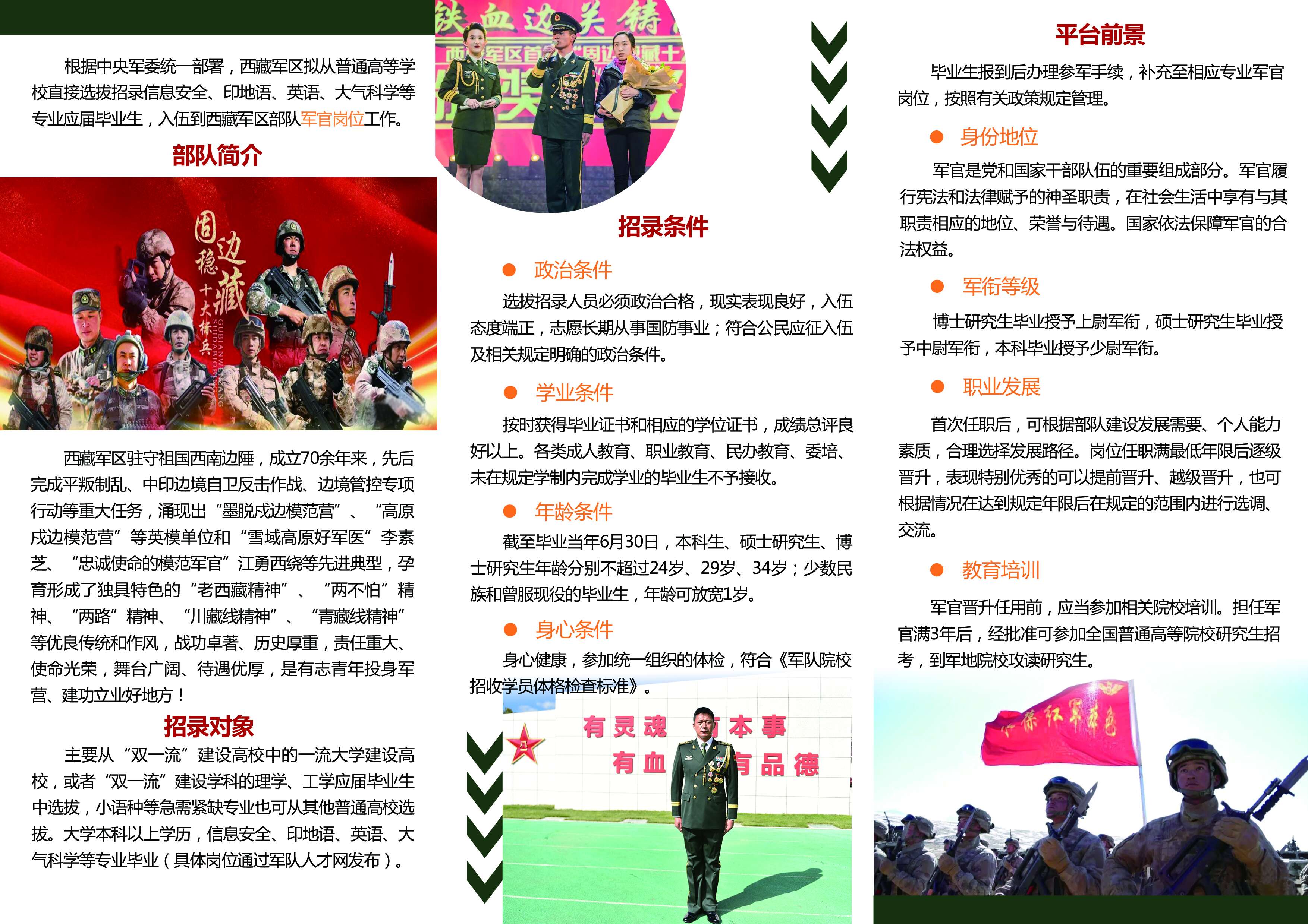 西藏军区直招军官选拔答疑会,3月20日下午3:30开始(请同学们至少提前5分钟到场)基础教学楼A307。