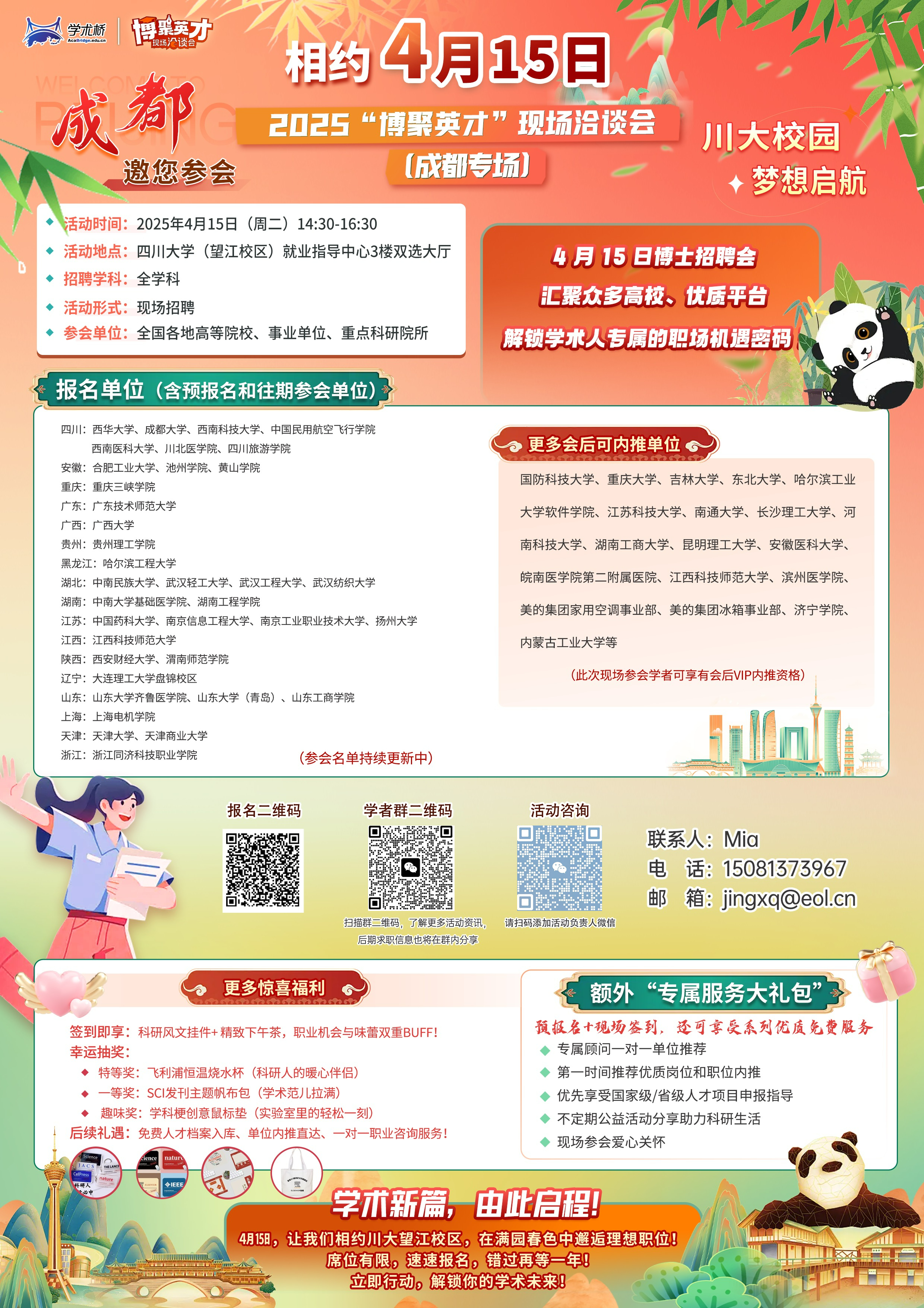 4月15日 14:30 就业中心3楼 博聚英才现场洽谈会