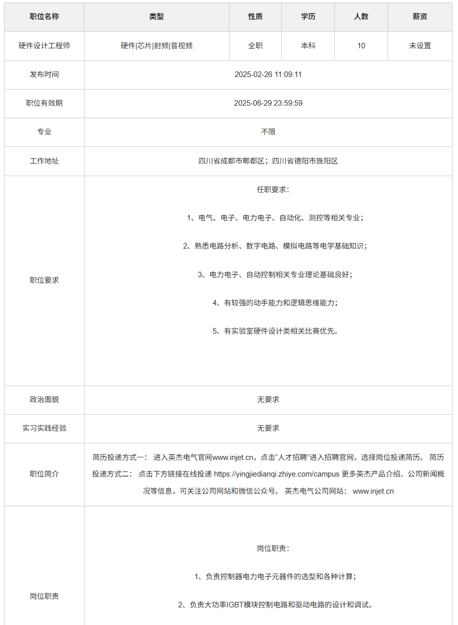 四川英杰电气股份有限公司成立于1996年,是专业的工业电源设备研发及制造企业,于2020年在深交所创业板上市,股票代码300820。公司目前拥有8家分子公司,在德阳、成都以及深圳设有5大研发中心。