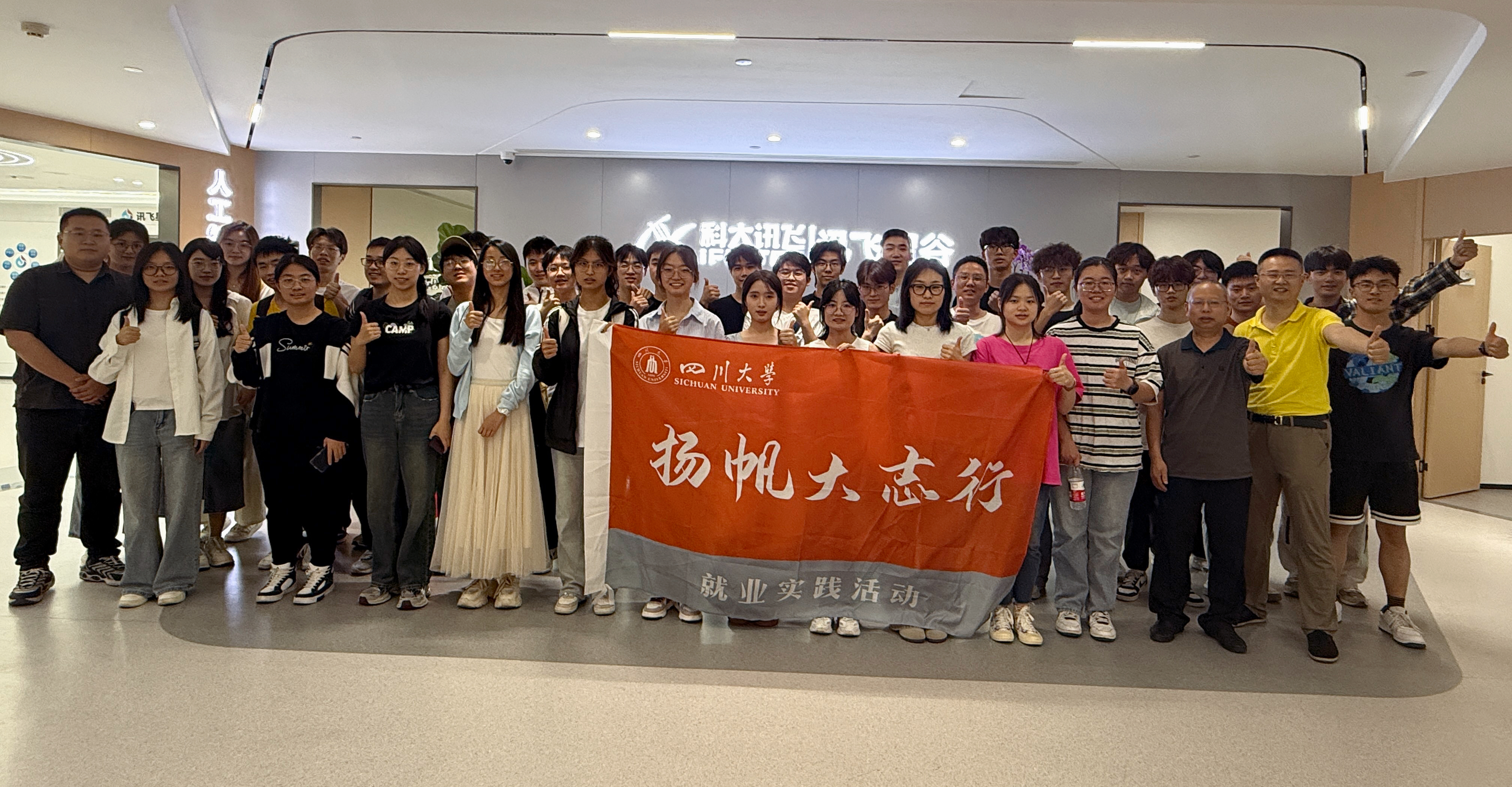 为了全面落实立德树人根本任务,促进校企合作,深化就业育人,积极响应公司“扬帆大志行”就业实践活动号召。公司于2025年5月16日组织员工实践团走访科大讯飞四川分公司,开展“扬帆大志行”访企拓岗就业实践系列活动。公司党委副书记廖勇明带队,公司员工科科长兼就业专职岗谢老师、院团委副书记申鑫老师以及40余名研究生和本科生参加了本次活动。通过座谈交流、技术研讨、展厅体验等环节,师生们近距离感受了人工智能前沿技术的魅力,也为产学研融合与职业发展开拓了新视野。