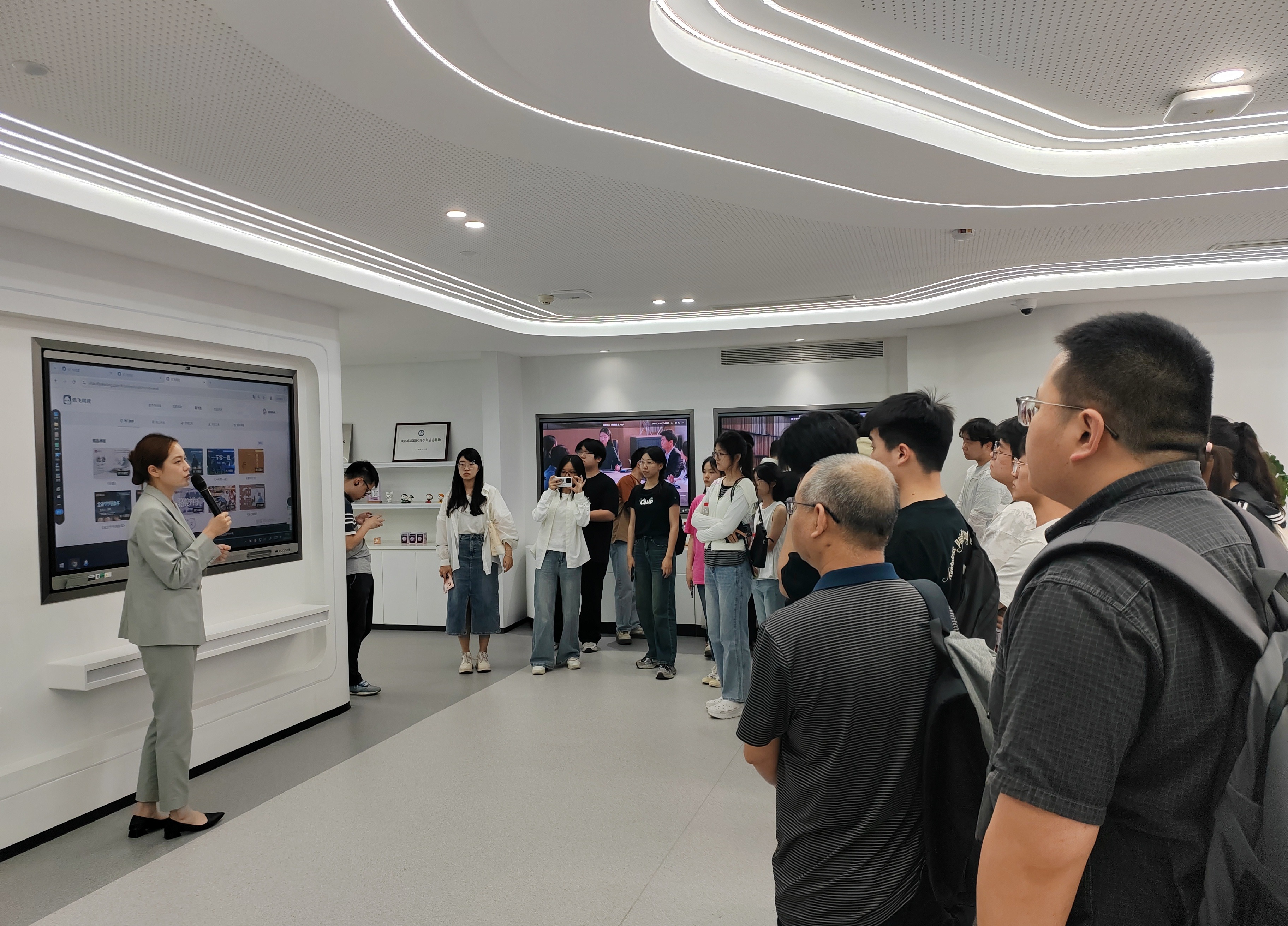 座谈会后,在工作人员的引导下,师生们参观了科大讯飞的展厅。展厅内陈列着各类先进的人工智能产品,同学们驻足观看,亲身体验,近距离感受科技的魅力。