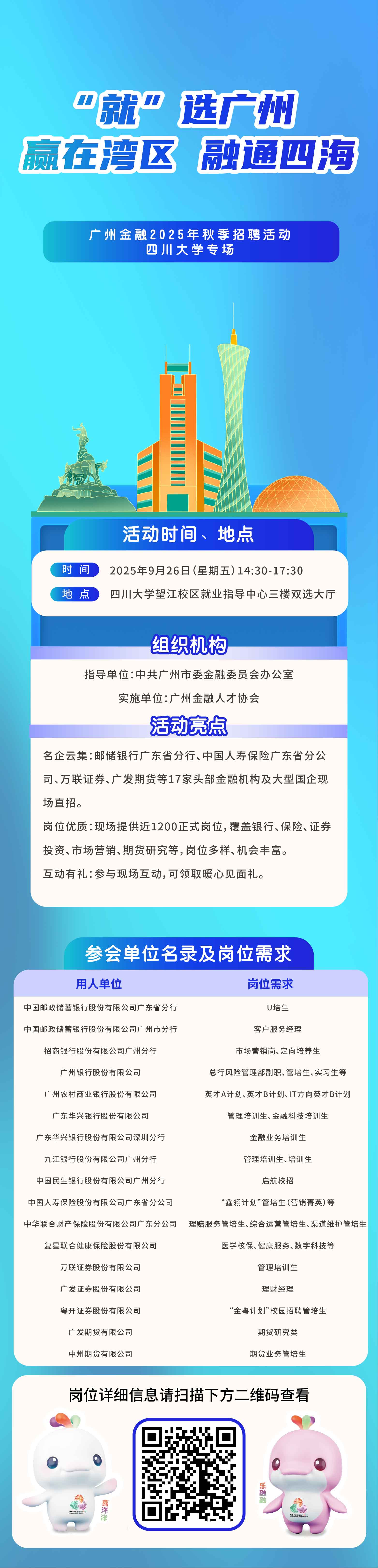 9月26日(星期五)14:30-17:30 365英国上市集团望江校区就业指导中心三楼双选大厅 广州金融招聘会