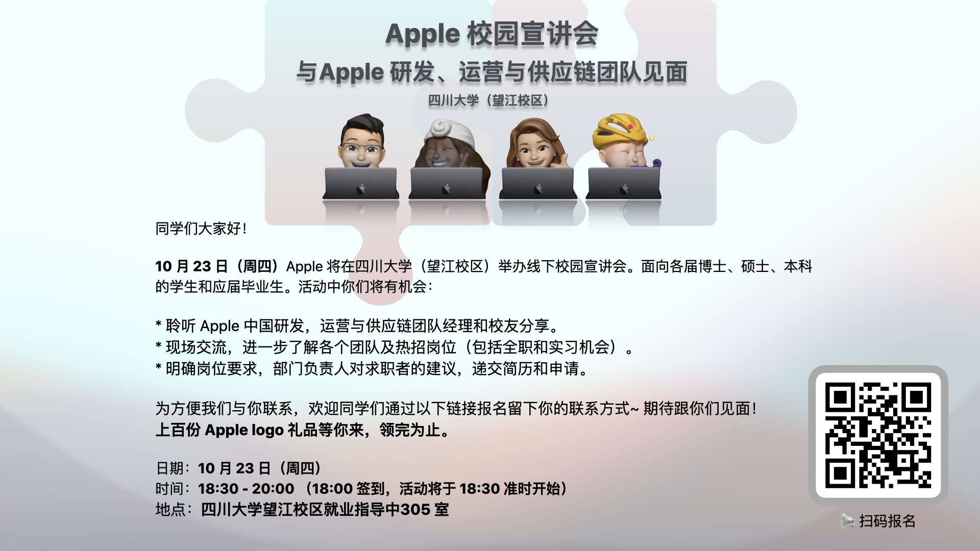 10月23日18:30就业指导中心305 Apple校园招聘