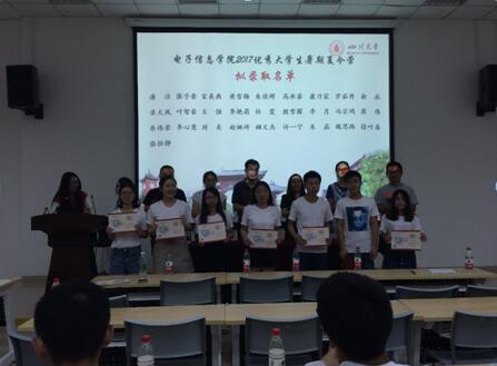闭营仪式一开始,冯国英教授首先就几天来的夏令营活动做了简单总结,然后介绍了本次夏令营荣誉评定标准和名额设置情况。之后,邰明松书记发言,感谢同学们活动以来对于公司工作的支持并向同学们表达了公司对于大家的欢迎和对他们未来就读研究生的期盼。接下来,邰明松书记、冯国英教授、李军华老师、赖华老师、计玉娟老师为参加此次夏令营的同学们发放荣誉证书并合影留念。最后,冯国英经理向同学们再次表达了关心和对美好未来的期许,并宣布2017年暑期夏令营正式闭营。