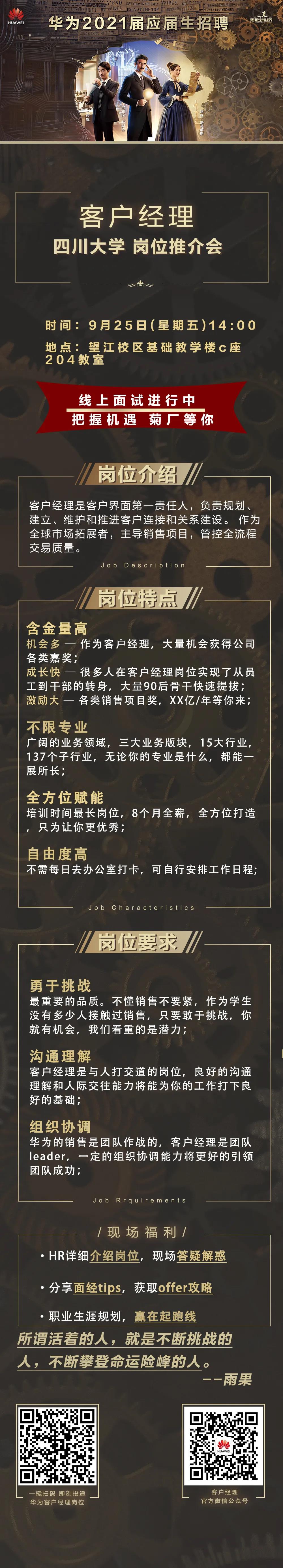 华为客户经理专场线下推介会,资深hr到场讲解,机会难得!