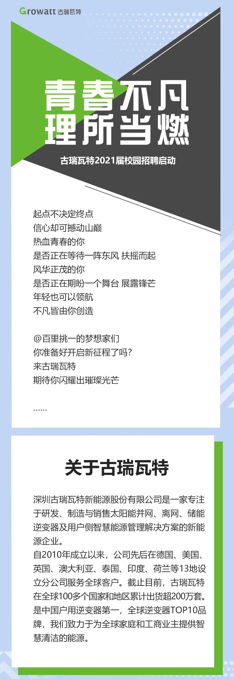 【简历内推邮箱】HR-T@growatt.com,邮件及简历备注:岗位+姓名+公司+专业