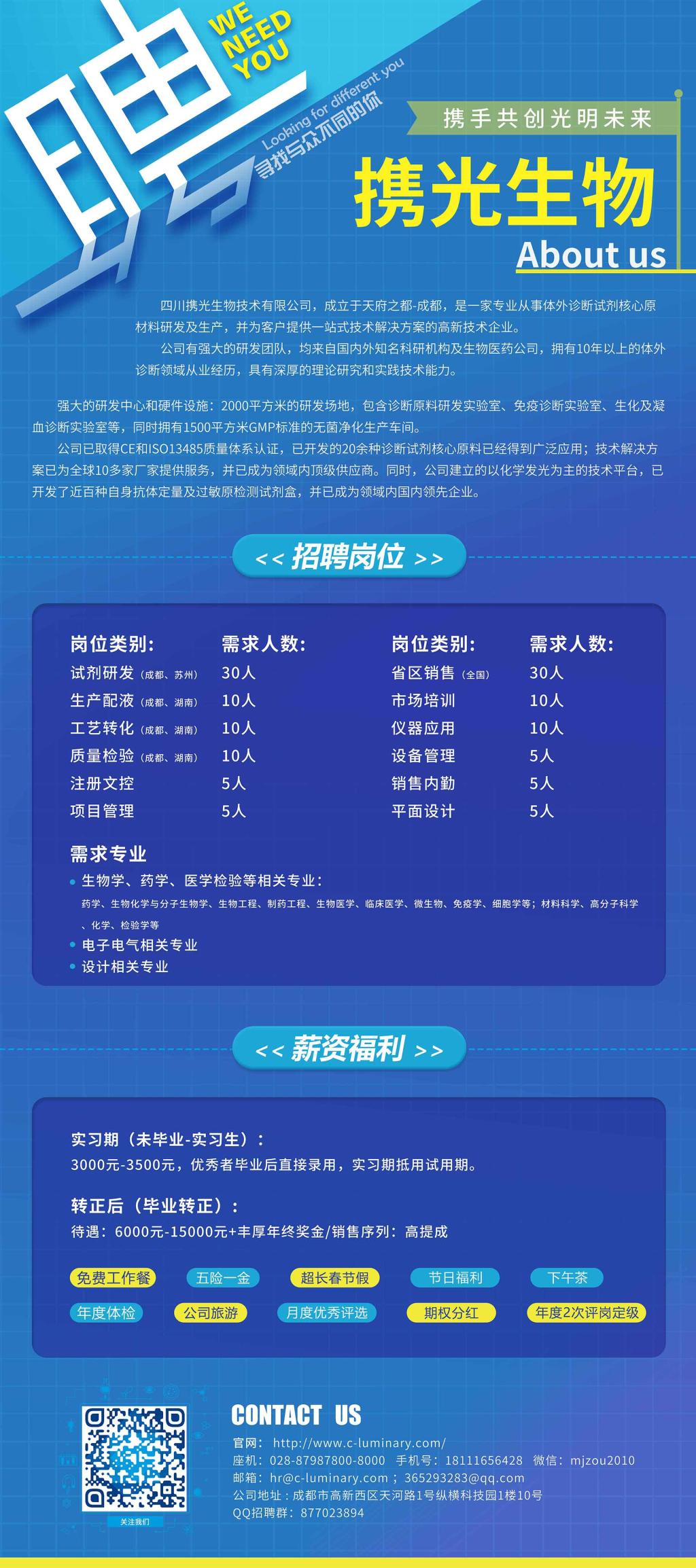 专业从事体外诊断试剂&医疗器械研发、生产、销售的综合型高新企业,与贵校的专业非常匹配;