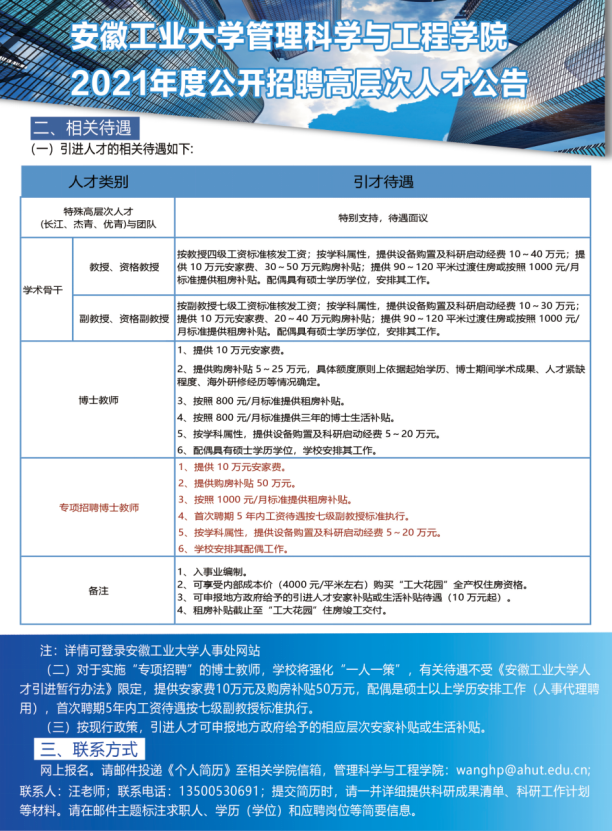 (1)提供10万元安家费,购房补贴40-50万,科研启动费15-20万;