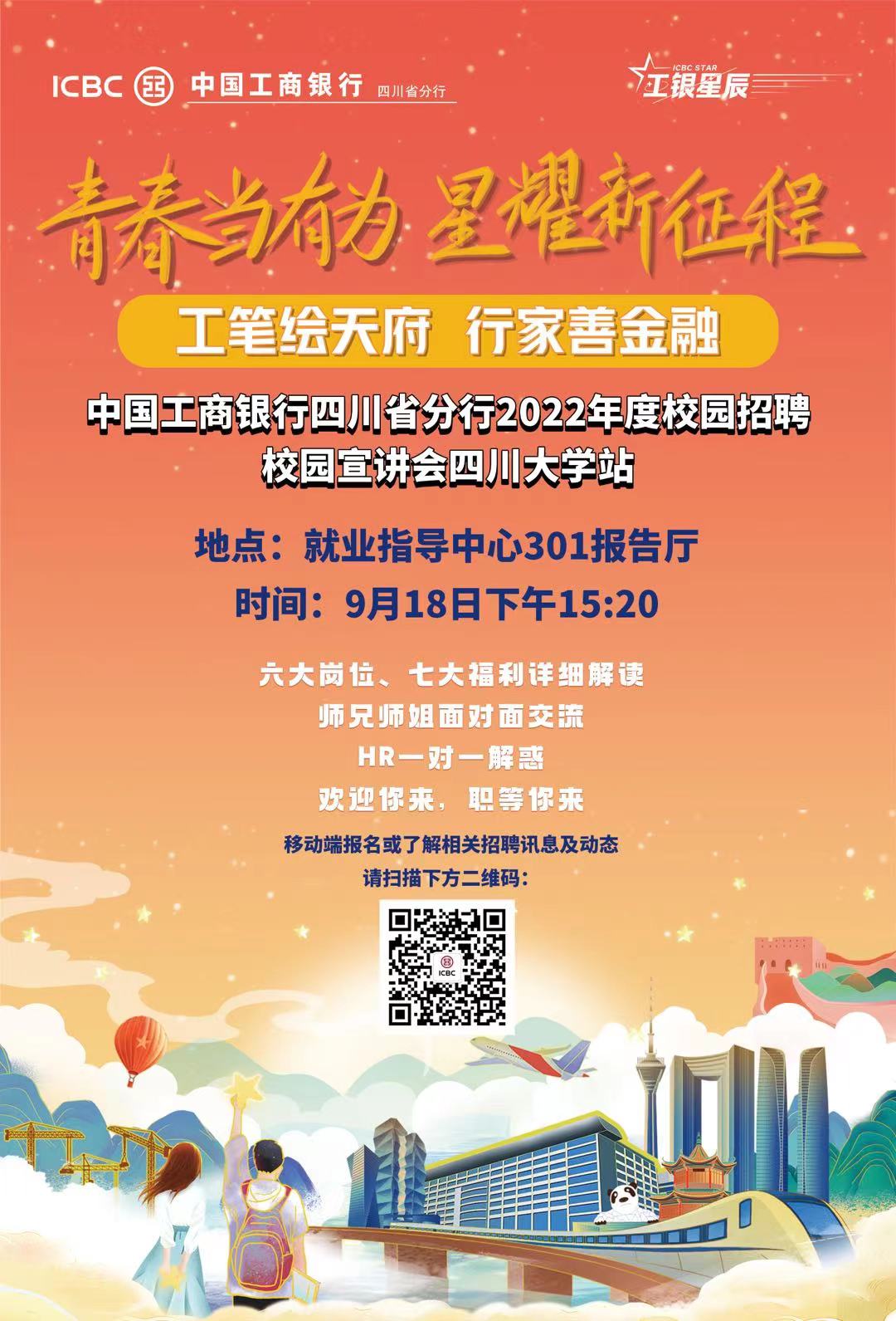 中国工商银行四川省分行招聘宣讲!招聘岗位多,大家可以去宣讲会现场了解哈,还有精美伴手礼可得!