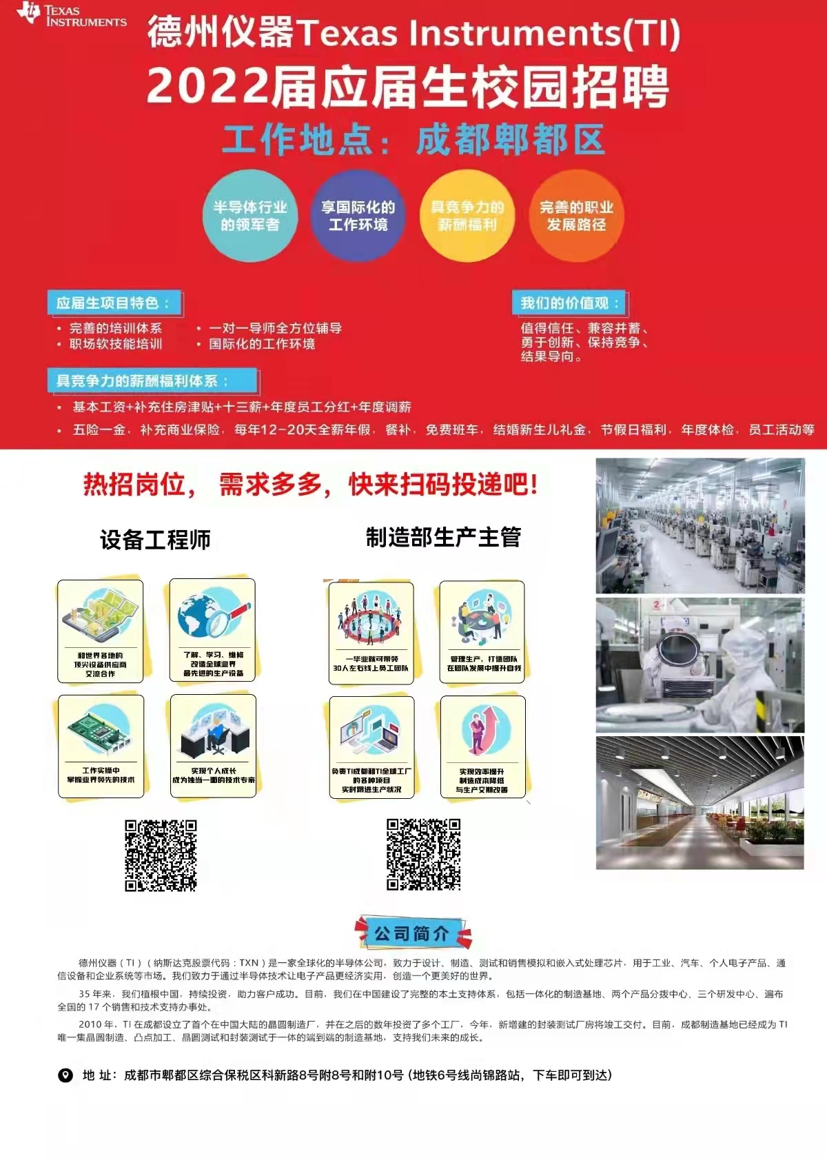 “芯动TI,职等你来!” 美国500强,全球领先的模拟和嵌入式芯片企业、半导体行业领军者-德州仪器TI(成都)校园招聘,赶快关注“德州仪器芯招聘“微信公众号完成简历投递!
