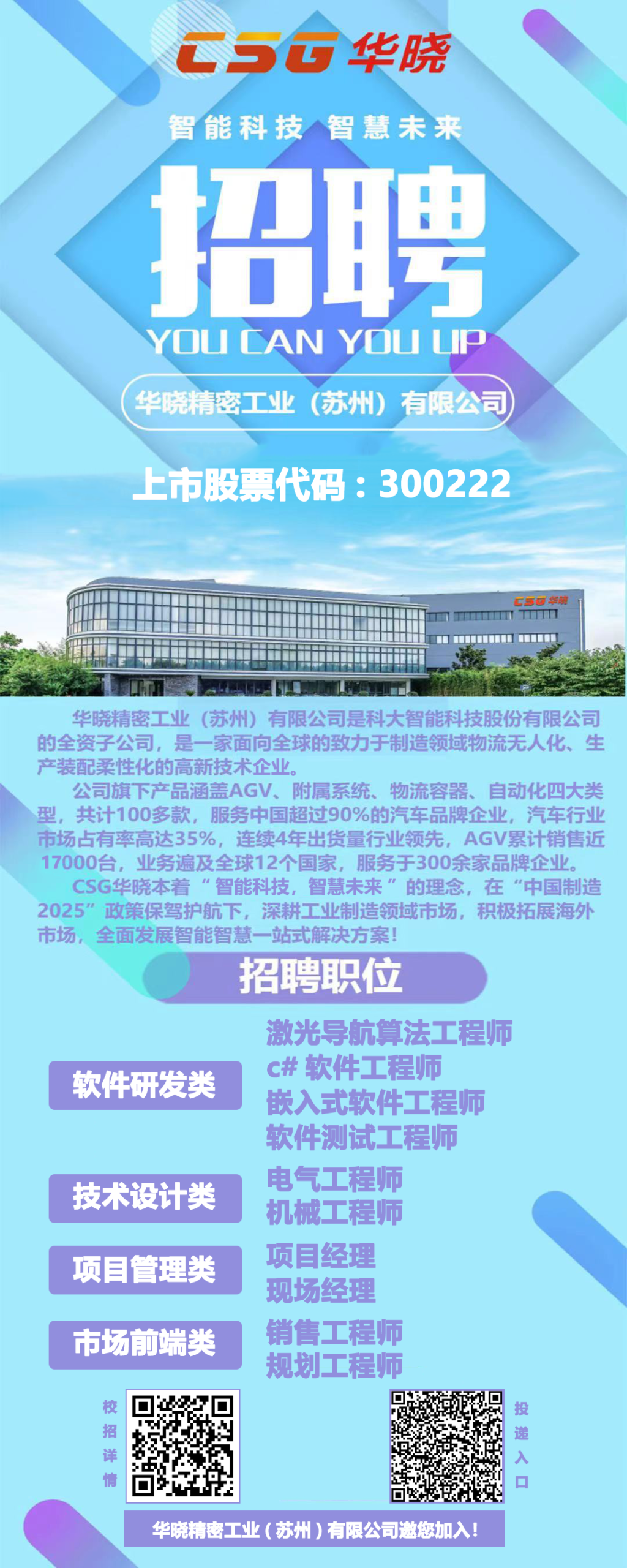 华晓精密工业(苏州)2022届365英国上市集团校园招聘火热进行中!空中宣讲时间:10月28日 上午10:00点击链接入会 https://meeting.tencent.com/dm/QSHiuN5R3oQD或腾讯会议→加入会议→输入会议 ID:542 498 555️职能、技术岗位等14个岗位需求,诚邀同学们前来应聘️核心技术类岗位年薪可达20W+人事电话/微信:17596540824