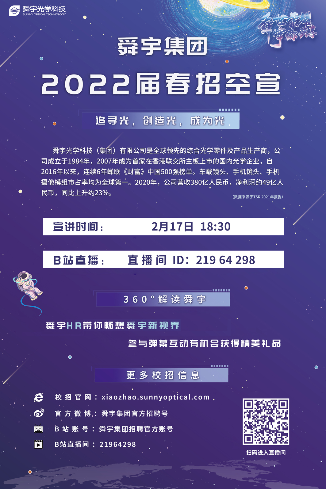 2月17日18:30舜宇集团2022春招空宣(详见链接)