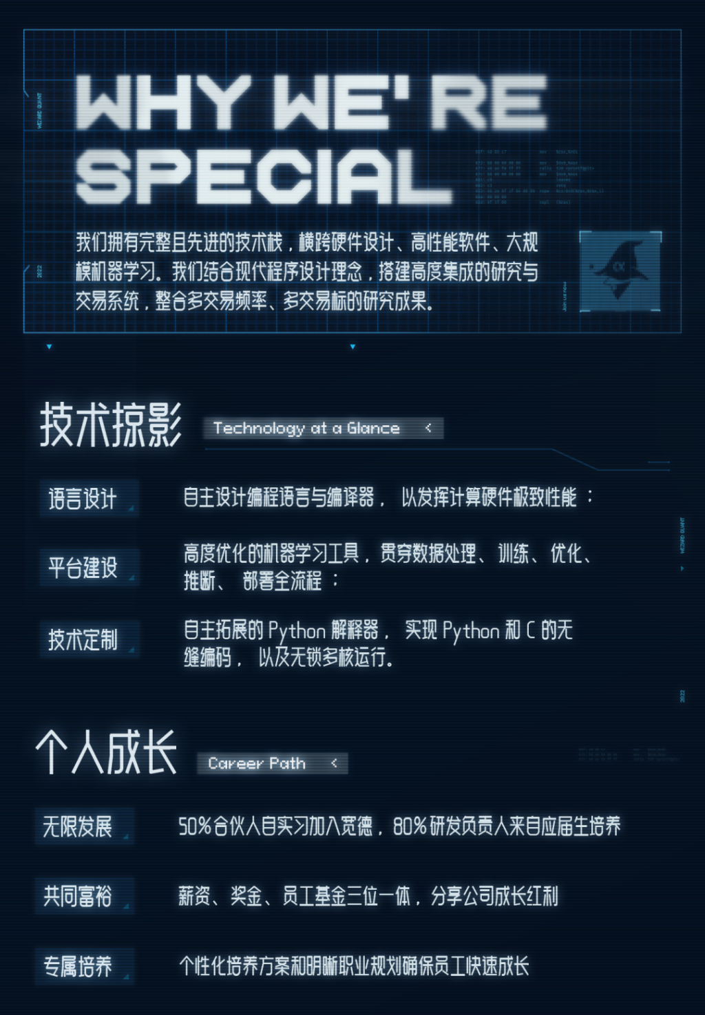 【宽德投资】信息技术部9大核心岗位火热开放! 未来量化IT大神们!想先人一步,拿到国内头部量化对冲基金公司的Offer吗?简历投起来! — 岗位涵盖—C++/大数据/AI平台/高性能计算/FPGA异构计算/数据分析/运维/前端/IT项目经理—薪资亮点 —Special Offer提前发放,至少35w起 能力过人,足够优秀,60w+—工作地点 —base成都/上海/珠海/北京/深圳 简历投递:hr@wizardquant.com全职、实习职位同步开放,点击推文了解岗位详情吧!