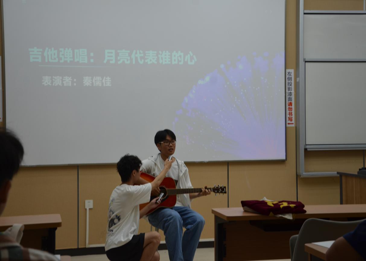 活动于上午9点50分正式拉开帷幕。全体成员首先在图书馆门口合影留念,定格下珍贵的瞬间。随后,大家前往综合楼C103一同参加社庆活动。本次社庆活动设计了一系列有趣的游戏与精彩的节目。首先,社庆以一段回顾科技园年度历程的开场视频拉开序幕,迅速点燃全场。随后,策划小组为学长学姐们送上聘书,全体成员倾听学长学姐们发言,充满温度的发言深深地感染着在场的每一位同学,指引着大家怀揣憧憬地向阳前行。紧接着,吉他弹唱《反方向的钟》以悠扬的旋律为活动奠定了温暖的基调,而“海龟汤”推理游戏则迅速调动了大家的参与热情,30分钟的脑力激荡中,同学们争相竞猜,笑声不断。穿插其间的三次抽奖环节更是惊喜连连,奖品通过奖券形式发放,极大提升了同学们的参与积极性。此外,吉他指弹《like a star》和弹唱《再见杰克》《月亮代表谁的心》《无限速》等节目轮番上演,音乐与掌声交织,展现了科技园成员的多才多艺。