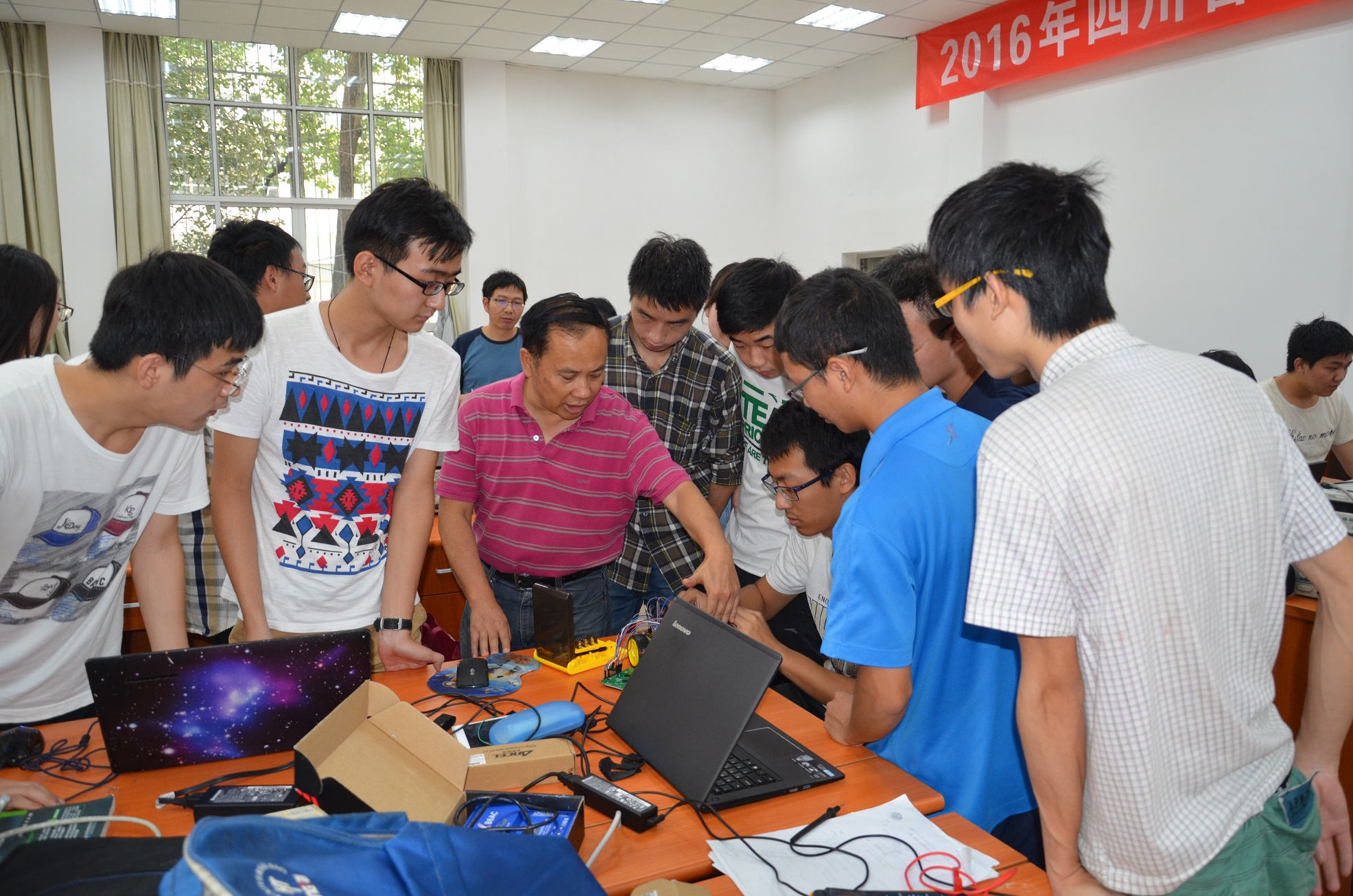 2016年7月18日上午10点开始,在365英国上市集团望江校区西五教附201室,2016年省电子设计竞赛为期七天的赛前培训正式开始,参加本次赛前培训的有公司党委蒋斌书记、副经理周新志教授、徐家品教授、王正勇副教授、华伟副教授、植涌老师、夏文龙老师、孟庆党老师、刘俐老师、陈晓娟老师以及李运国老师。