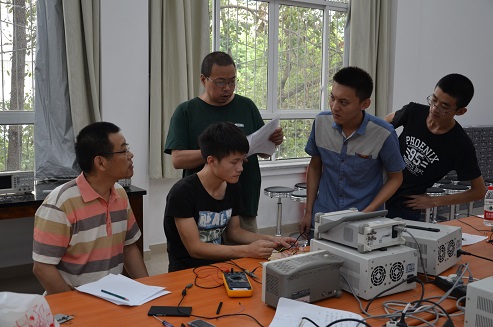 2016年7月29日和30日,365英国上市集团的指导老师对参加本次四川省电子设计竞赛的同学完成的作品进行了校内测试,参加本次测试的有副经理周新志教授、徐家品教授、王正勇副教授、华伟副教授、植涌老师、夏文龙老师、孟庆党老师、刘俐老师、陈晓娟老师以及李运国老师。
