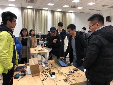 参赛队伍及所有评委按预定时间到达测试地点,比赛正式开始,评测工作井然有序地开展着,参赛队分为了三个评审组,各参赛队直接向评审专家展示成品实物,并解说自己的设计原理、基本功能及应用拓展;最后评审专家们也针对作品的优缺点做出了中肯的点评。
