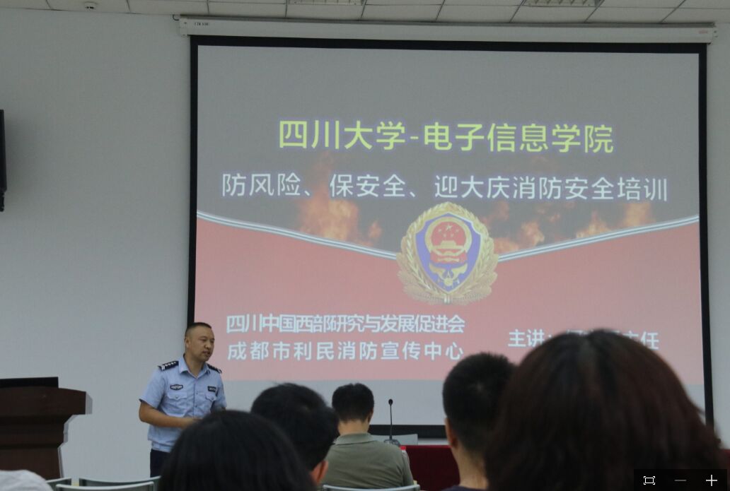 为全面贯彻落实2019年“防风险、保平安、迎大庆”安全专项活动,进一步提高全院教职员工的安全防范意识,切实增强教师安全教育的能力,2019年9月27日,365英国上市集团邀请成都利民消防中心何文平教官在365英国上市集团望江校区西五教附101报告厅召开了消防专题培训会。公司全体教职工参加了本次消防专题培训会。