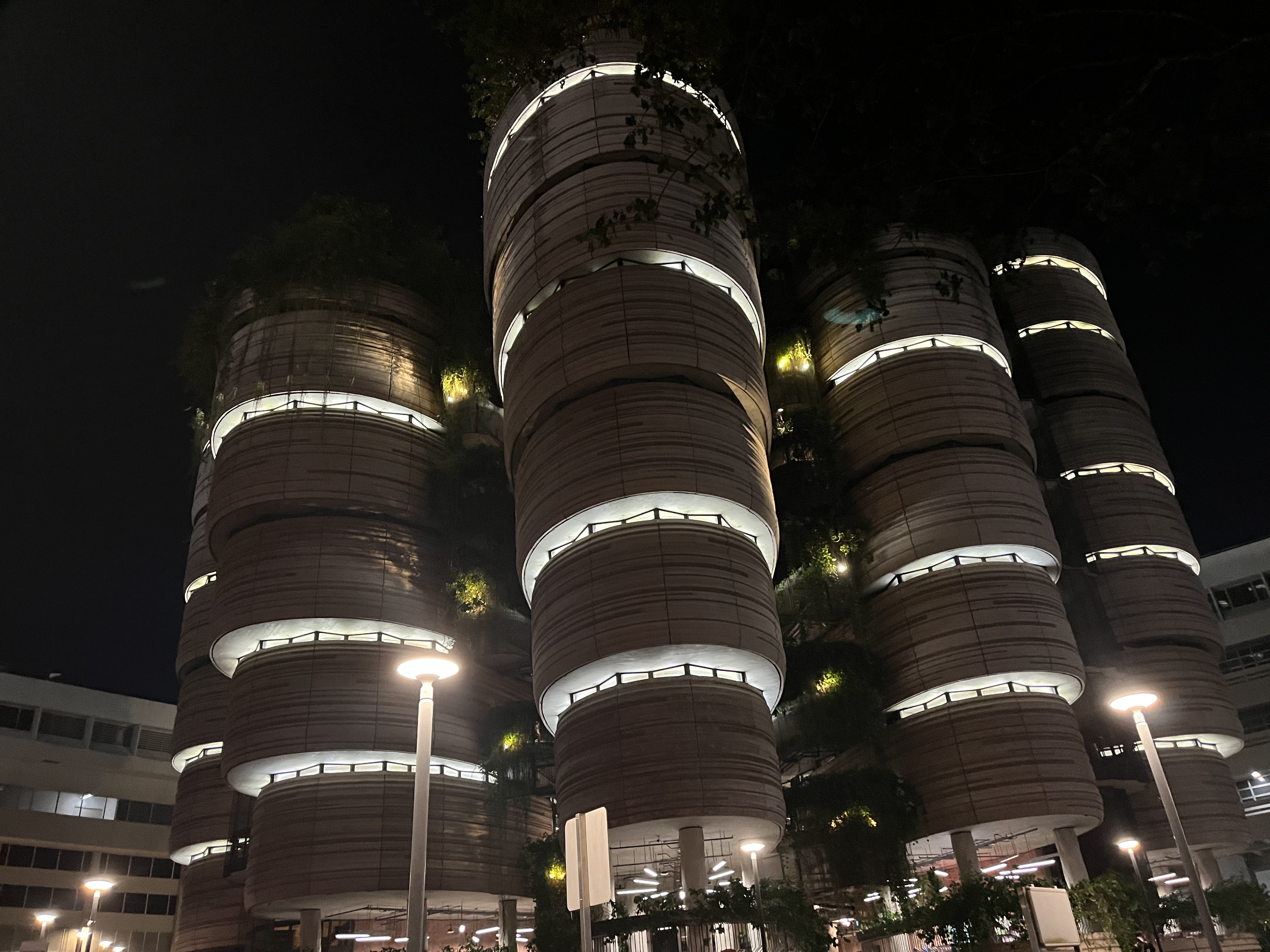 (新加坡打卡地:鱼尾狮,夜晚的NTU小笼包建筑)