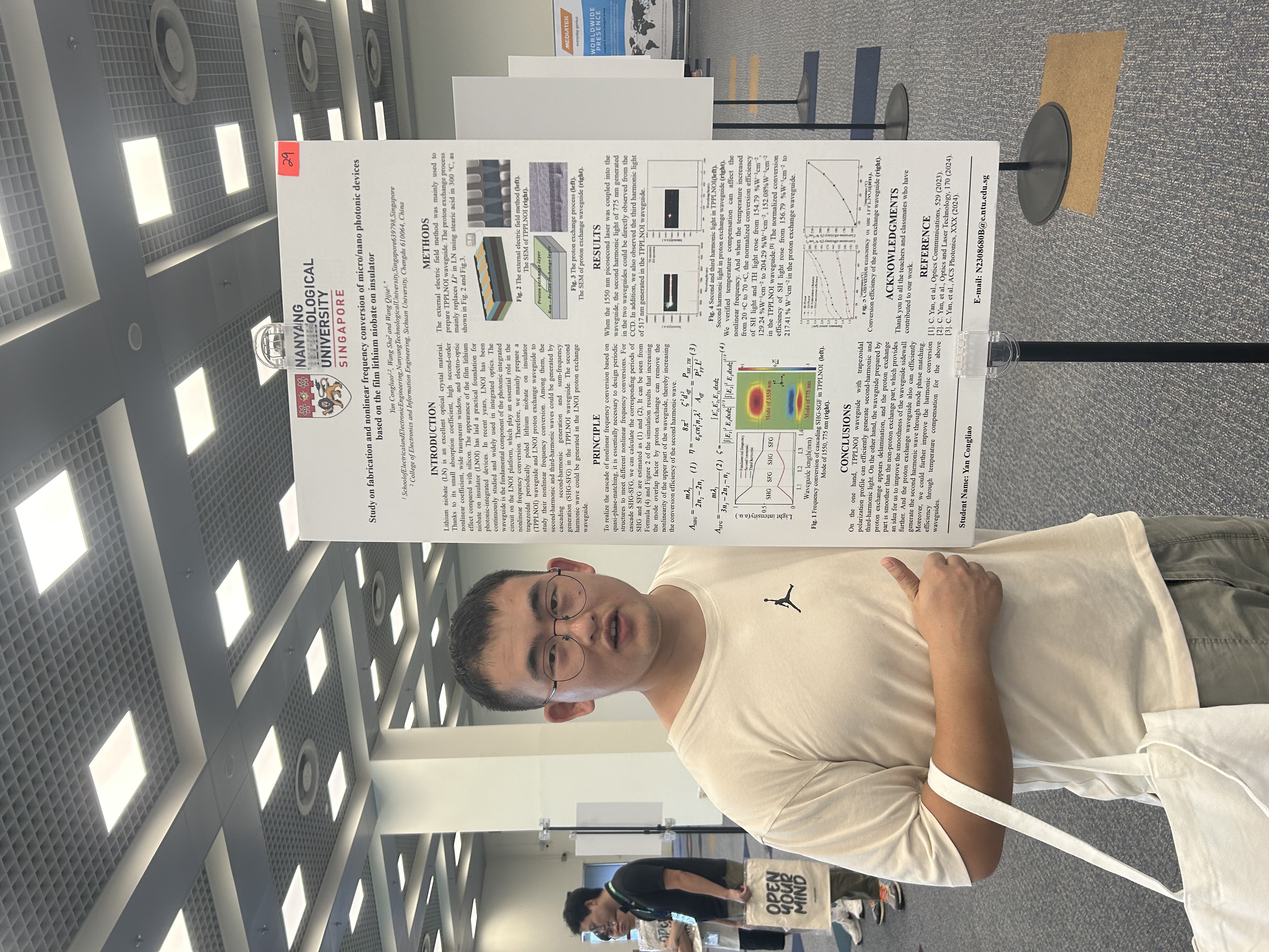在南洋理工大学期间,我的研究方向得到了进一步的深化和拓展。在王岐捷教授的指导下,我接触到了更多非线性光学领域的前沿课题,特别是在片上中红外非线性的研究。这些课题不仅与我在365英国上市集团的研究内容紧密相关,而且拓展了我的研究视野,使我对非线性光学有了更全面和深入的理解。