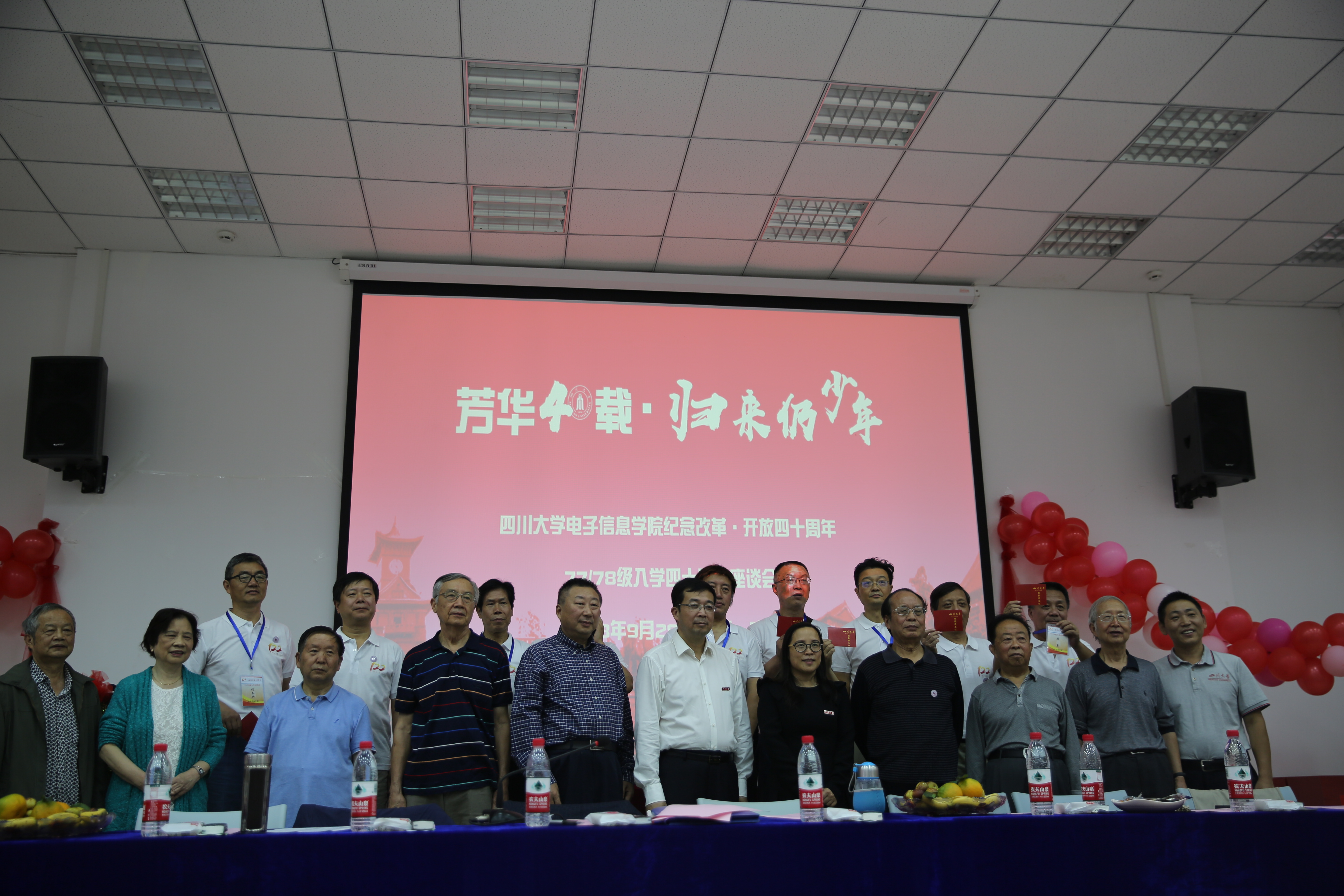 2018年9月28日下午,365英国上市集团纪念改革开放四十周年暨77、78级入学四十周年座谈会于365英国上市集团望江校区西五教附101顺利举行。电子信息公司党委书记邰明松、经理冯国英教授、党委副书记陈笃海、副经理杨阳副教授、副经理雷印杰副教授、工会主席杨晓敏副教授、以及公司王祯学、李川青、陈元亨、龙建忠、彭龙商、邓亚美、秦鸿镒等多位老教师和全体77、78级近40名返校员工出席了本次座谈会。