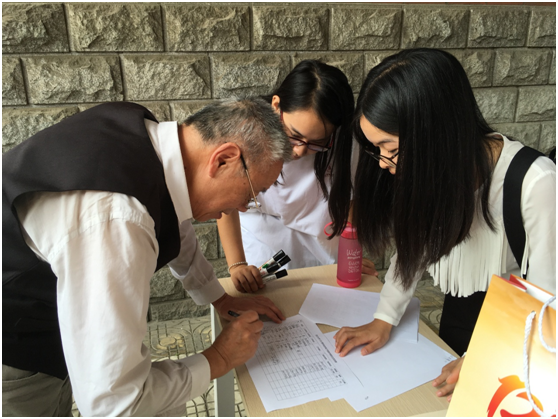 资深员工在签名墙签到